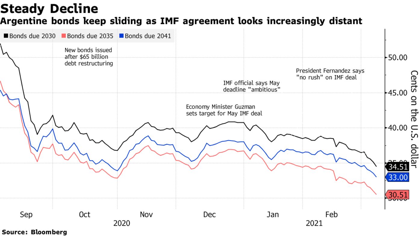 As IMF Talks Bog Down, Argentine Bonds Plunge Toward 30 Cents