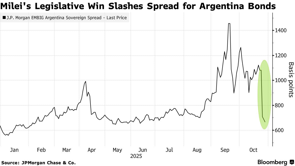 Suriname raised almost $1.6 billion with a debt sale this past week, two years after emerging out of default. It was the latest in a string of October bond deals, which also included Angola and Kenya, that investors say is likely to continue. They’re looking at Argentina next, with JPMorgan Chase & Co. saying market access is now a “plausible goal again” after President Javier Milei’s party clinched a win in midterms, triggering a massive relief rally. Meanwhile, CCC+-rated Laos is holding investor meetings for a benchmark-sized bond sale.